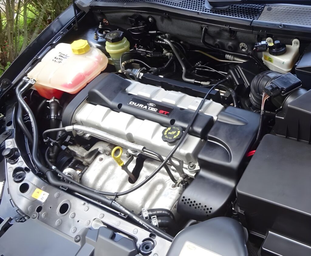 The Duratec-ST was, in essence, a Zetec engine in disguise, heavily reworked to deliver significantly enhanced performance. At its core was a Cosworth-designed cylinder head, featuring larger inlet valves, stiffer valve springs, and Variable Valve Timing (VVT). Forged pistons added durability, while a dual-stage inlet manifold and a free-flowing exhaust system allowed the engine to breathe more efficiently. These upgrades boosted output from the standard 2.0-litre’s 130 bhp to an impressive 171 bhp, with torque increased to 195 Nm. To handle this extra performance, power was transmitted through a specially selected Getrag 285 six-speed manual transmission, chosen specifically for its compatibility with the enhanced drivetrain.