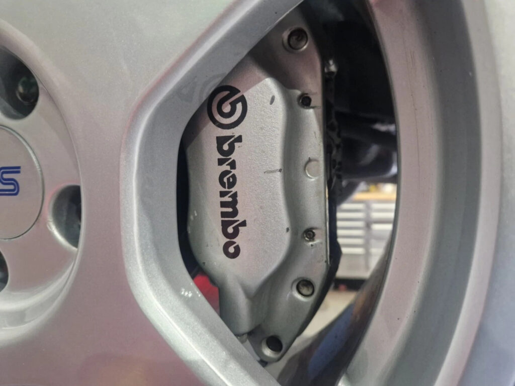 The suspension was heavily revised, Sachs dampers were fitted with a thicker 18mm front anti-roll bar. The suspension was generally stiffened and lowered by 25mm with increased negative camber. The steering rack was also revised. Braking power was supplied by 4-pot calipers and Brembo 324mm ventilated discs up front. The brakes are covered by 18″ OZ Racing light-alloy wheels.