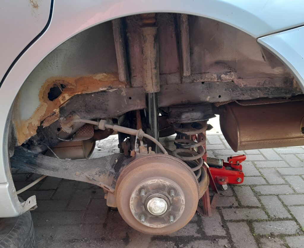 The inner rear arches represent the second major corrosion area, and it’s a particularly worrying one due to its proximity to critical structural points, including the rear seat belt anchorages. Corrosion often starts around the seat belt mounting points, where water ingress and trapped moisture lead to severe rust over time. From there, it tends to spread along the seam where the inner arch meets the boot floor, weakening the structure and potentially compromising safety if left unchecked.